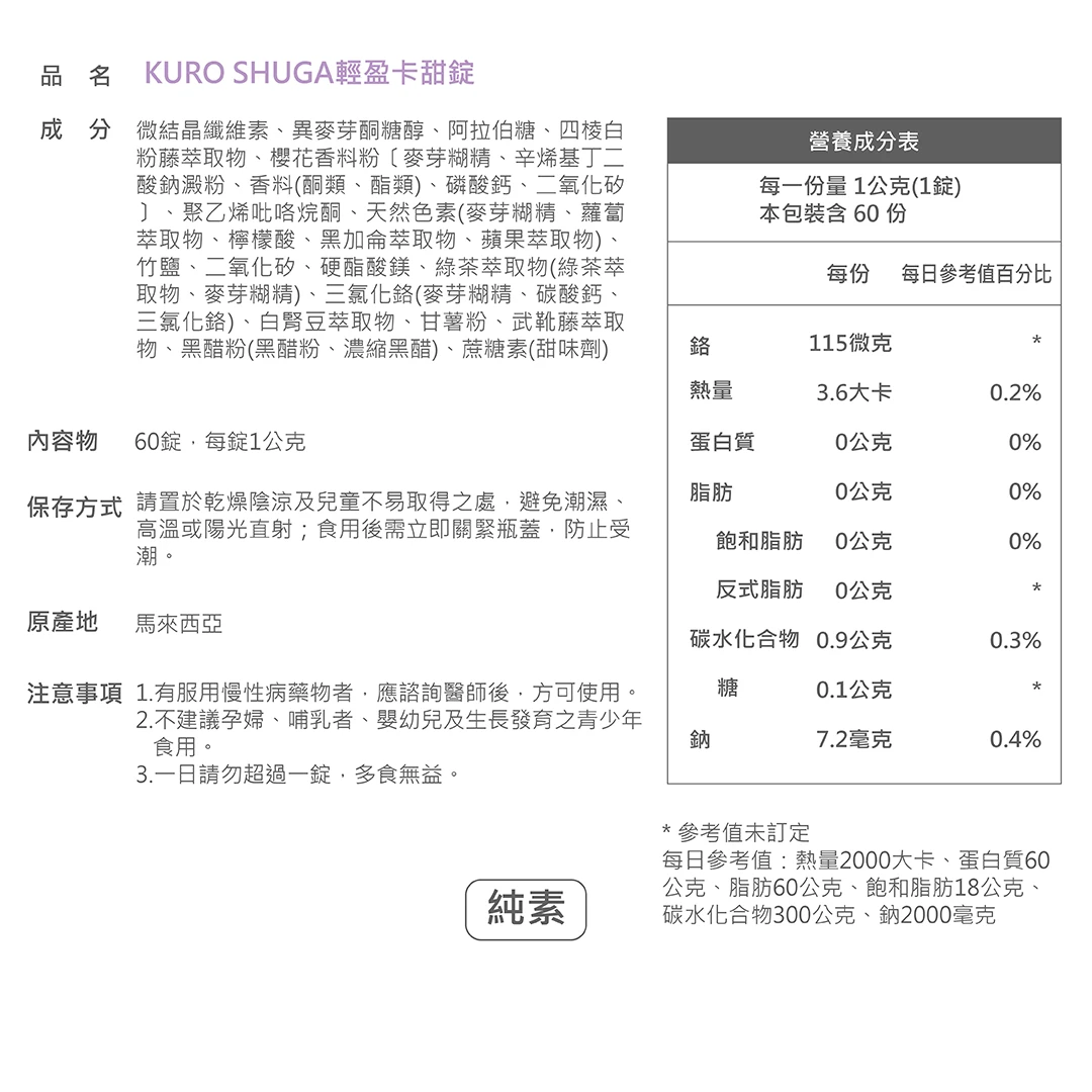 -KURO SHUGA 輕盈卡甜錠 x1盒