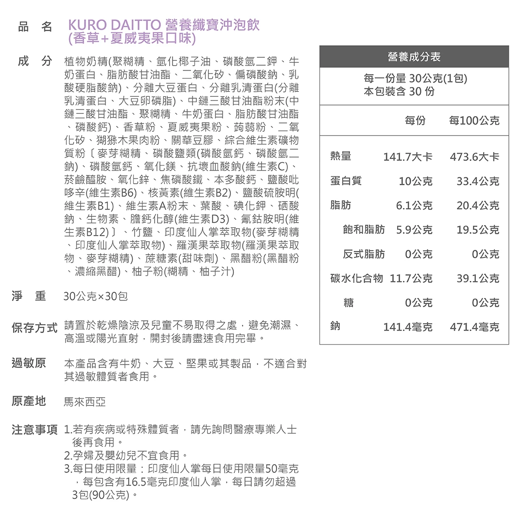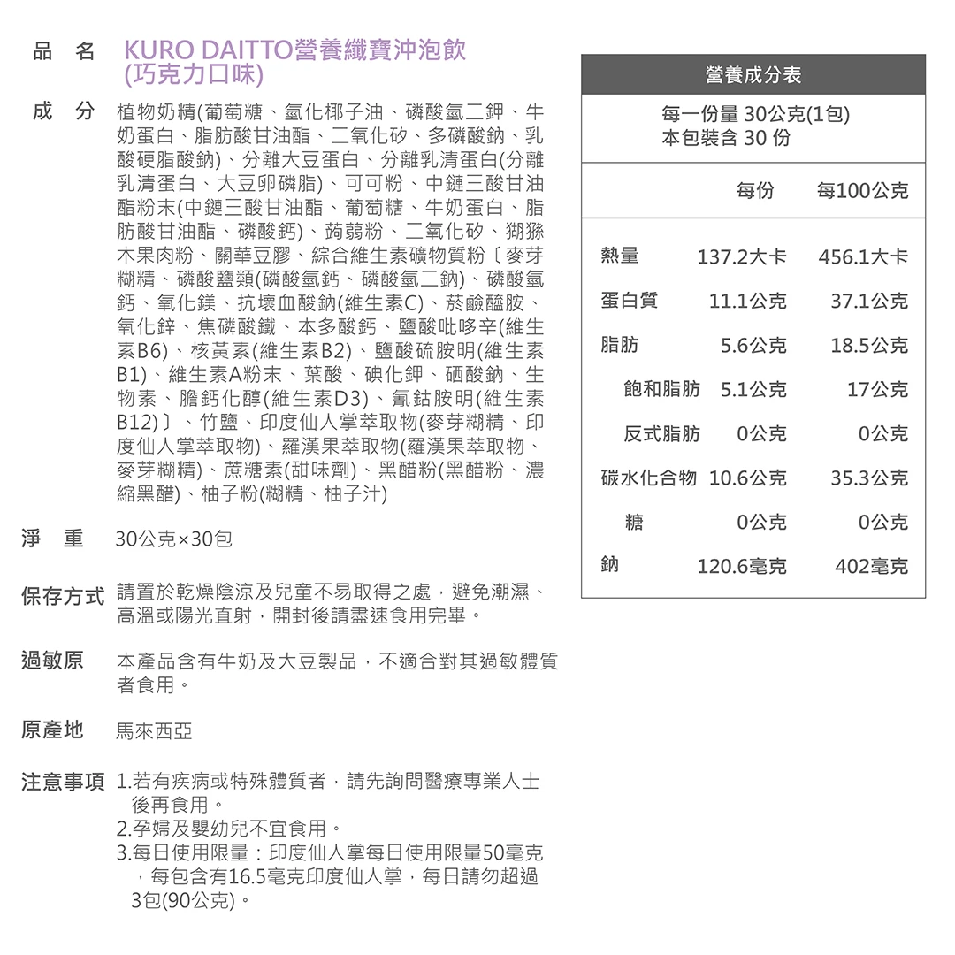 -KURO DAITTO 營養纖寶沖泡飲 x3盒